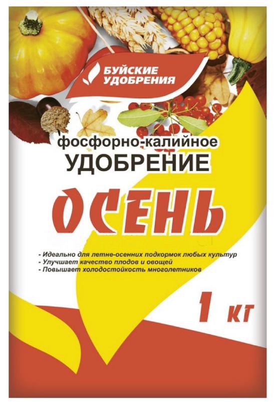 Комплексное фосфорно-калийное удобрение Осень (Буйские удобрения) предназначено для внесения под огородные, садовые и декоративные культуры. Содержит фосфор и калий, которые подготовят культуры к хорошей перезимовке. Эффективно использовать осенью при перекопке почвы, при закладке посадочных ям, для подкормок в период плодоношения и в конце вегетации.