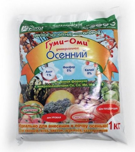 Органо-минеральное удобрение Гуми-ОМИ Осенний с повышенным содержанием фосфора и калия. Идеально для внесения в почву осенью. Подходит для овощей, ягод, цветов, деревьев и кустарников. Повышает урожайность, плодородие, улучшает структуру почвы и улучшает качество продукции.