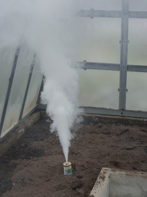- с догоранием шашки, дым еще пару часов должен остаться в теплице;