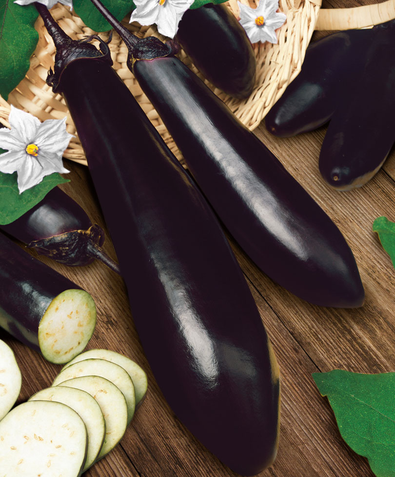 Для выращивания под пленочными укрытиями. Среднеспелый (110-115 дней) среднерослый (0,7-1,0 м) сорт. Гигантские плоды достигают длины 35-40 см, цилиндрические, глянцевые, темно-фиолетового цвета, без горечи, диаметром до 10 см, массой 500 (до 700!) г. Мякоть кремово-белая, очень вкусная, практически без семенного гнезда (даже у самых крупных плодов). Кожица тонкая, нежная.