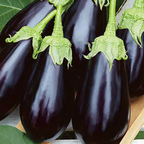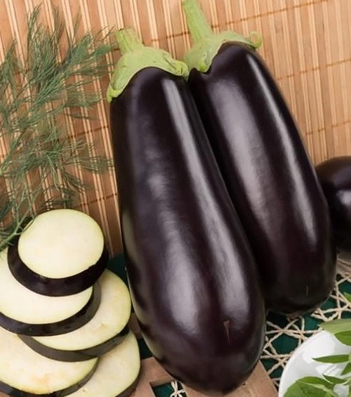 Для пленочных укрытий и теплиц. Среднеспелый (100-110 дней) высокорослый (до 1,2 м) неприхотливый сорт. Плоды овальной формы, длиной 12-20 см, темно-фиолетовой окраски, с глянцевой поверхностью, массой 250-300 г. Мякоть средней плотности, белая с зеленым оттенком, без горечи. Урожайность одного растения 2,5-3,0 кг.