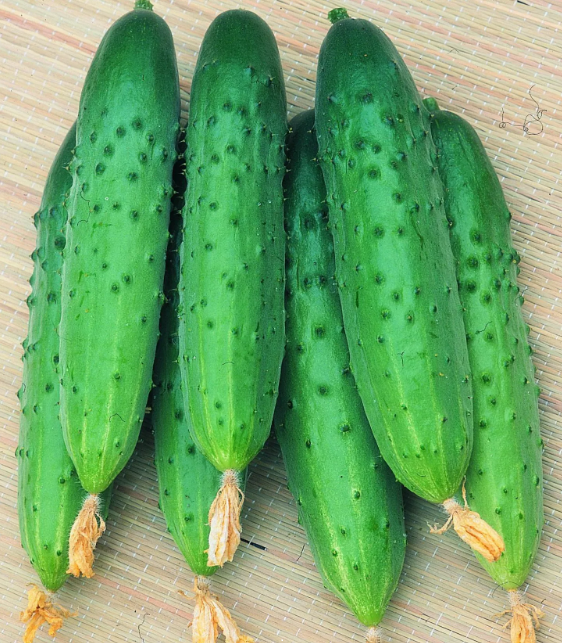 Для открытого грунта и пленочных теплиц. Среднеранний (49-52 дня)высокоурожайный. Плод слегка ребристый, мелкобугорчатый, с белыми шипами, цвет от средне до тёмно-зелёного, без горечи. Хорошая устойчивость к пятнистости, ложной мучнистой росе.