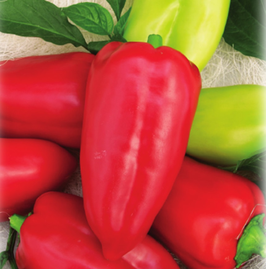 Для выращивания в теплицах. Раннеспелый (95-105 дней) сорт суперурожайного крупноплодного перца. Растение мощное, высотой 90 см. Куст полностью усыпан удлиненно-конусовидными глянцевыми плодами, длина которых действительно впечатляет (отдельные до 25 см!). Масса 150-200 г. Стенки сочные, сладкие, толщиной 4-5 мм. Продолжительное плодоношение обеспечит регулярный сбор плодов вплоть до поздней осени. Урожайность до 10 кг/м2.