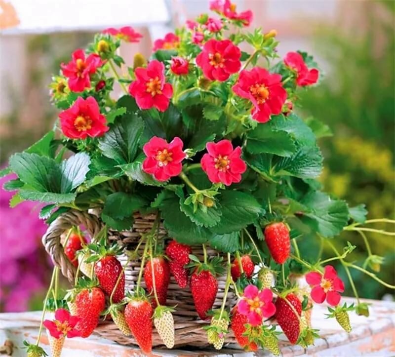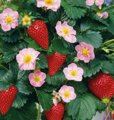 Ремонтантный высокопродуктивный сорт. Декоративен за счет огромных насыщенно-розовых цветков и крупных ягод. При правильном уходе цветет и плодоносит в течение всего лета. Ярко-красные удлинённые ягоды отличаются особым ароматом, необыкновенной сладостью и сочностью. Идеальный сорт для выращивания на балконе в контейнерах и подвесных корзинах.