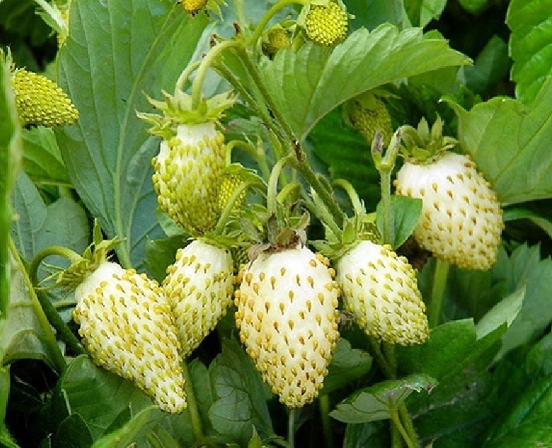 Ремонтантный сорт. Необычная кремово-золотистая окраска, очень сладкие и ароматные ягоды. Вкусные и ароматные ягоды. Совершенно не образует усов. Плодоносит с начала лета до первых заморозков. Ягоды среднего размера, яйцевидной формы, очень ароматные, сладкие.