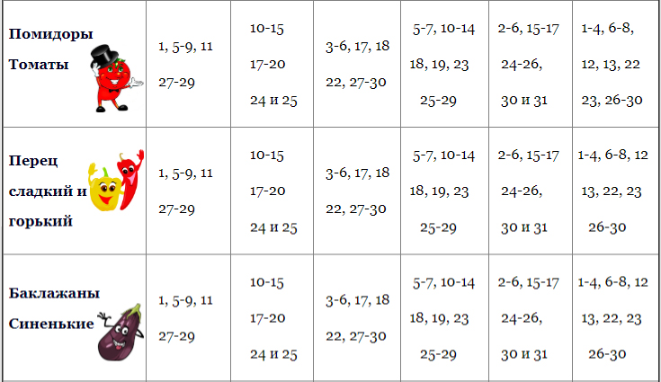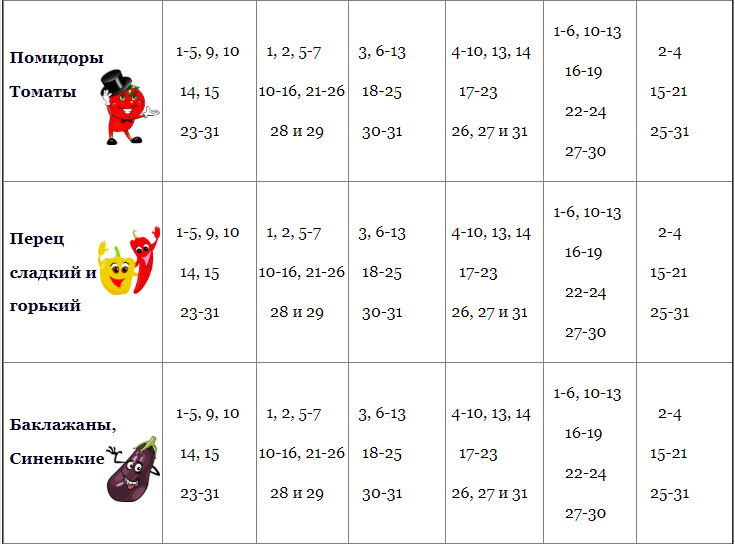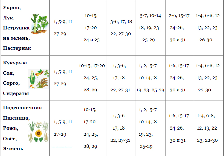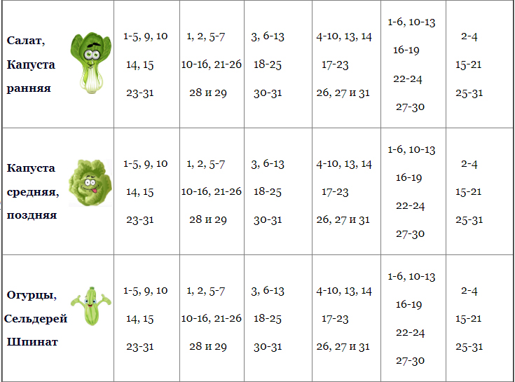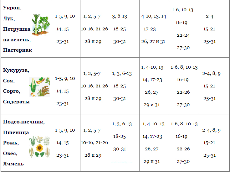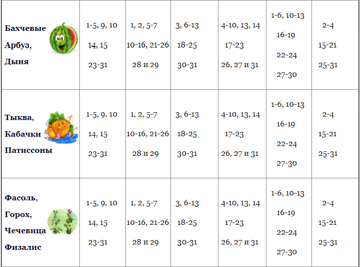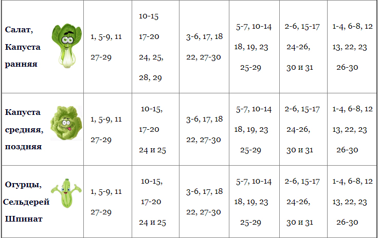 Следующую таблицу обязательно будет сохранить, поскольку это самый важный блок, в котором указываются дни, в которые КАТЕГОРИЧЕСКИ запрещено выращивать что-либо!