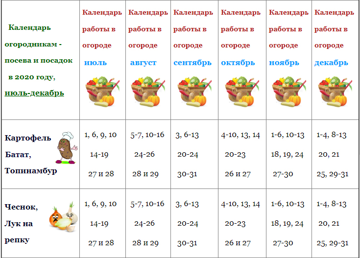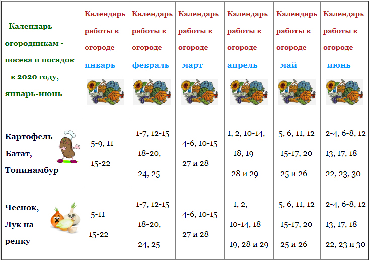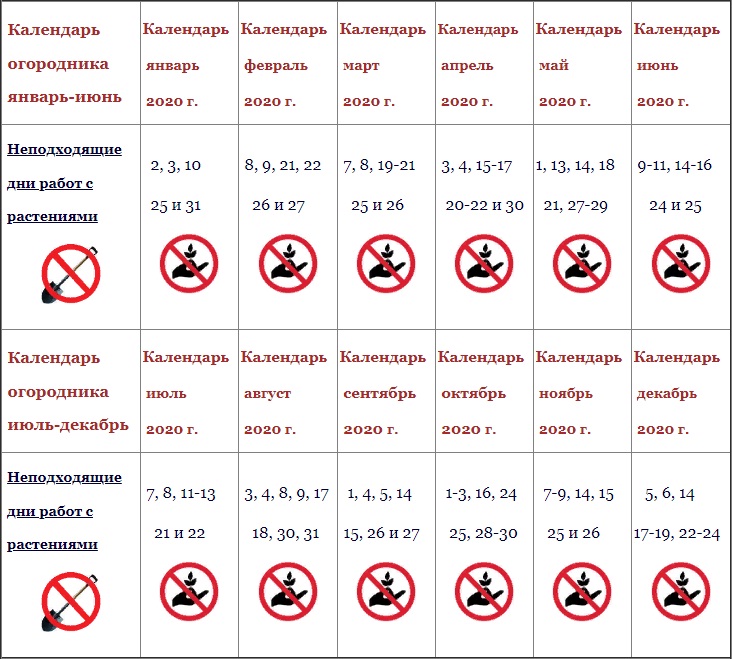 Таблицы огородника 2020 - благоприятные дни по месяцам