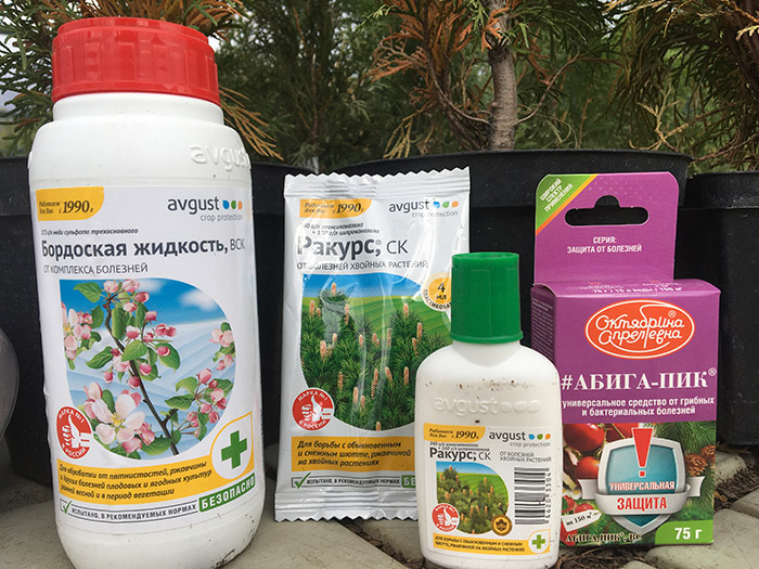 Для этого все хвойные растения нужно очищать от пожелтевшей хвои, отмирающих старых веточек и обрабатывать фунгицидами!