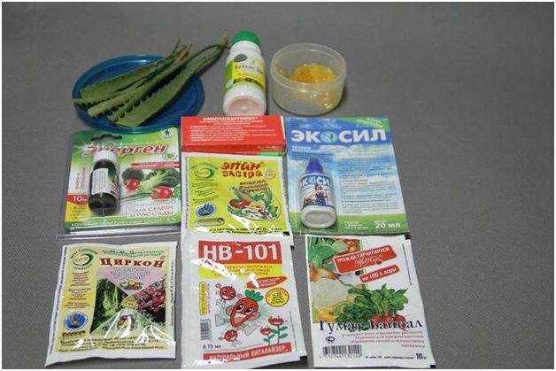 Замочить посадочный материал можно так же либо в природных (сок из листьев алое, раствор меда), либо в промышленных (Гетероауксин, Эпин, Корневин и др.) стимуляторах. Этот процесс называется гармонизацией.