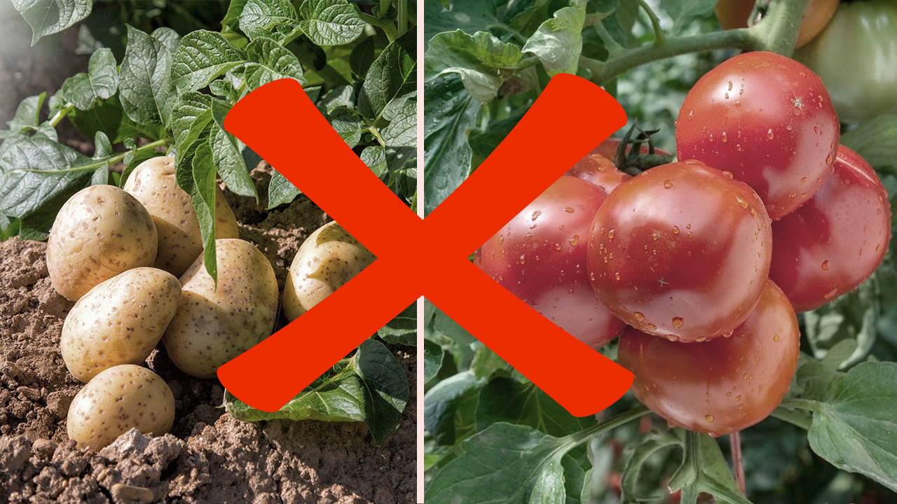 Эти растения, будучи посаженные рядом будут перенимать друг у друга болезни. Также не советуется с картофелем и томатами высаживать перец и баклажаны.