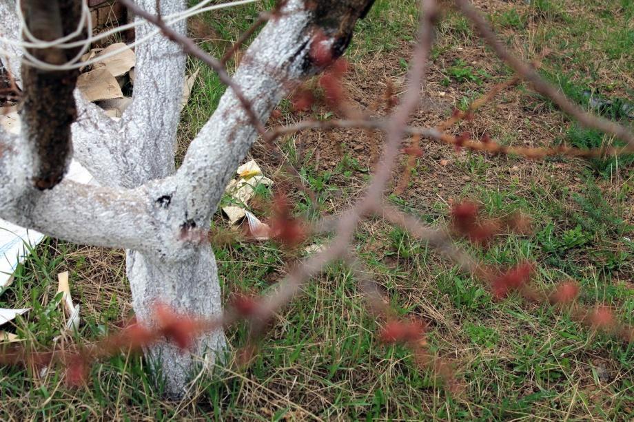 Обрезаются все поврежденные и больные ветви. Штамбы деревьев, стволы и основания главных сучьев очищаются от мха, лишайников и отмершей коры. Места разломов скрепляются, дупла замазываются, поросли подвоя вырезаются. Стволы деревьев нужно белить, чтобы защитить их от вредителей. Для защиты от зайцев в известь добавляют медный купорос. Для защиты от грызунов штамбы молодых обвязывают мелкоячеистой металлической сеткой либо ветками хвойных деревьев иголками вниз.