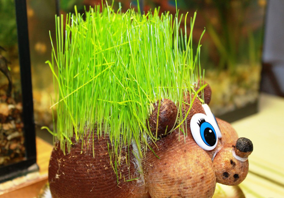 Дети очень любят стричь травянчиков и делать им всевозможные прически. Подстригать питомца можно через 10-14 дней после получения первых всходов, к этому моменту травинки достигнут в высоту 8-10 см. Если прическа не удалась или получилась слишком короткой – не переживайте, ведь зеленые волосы снова отрастут через 2-3 недели.