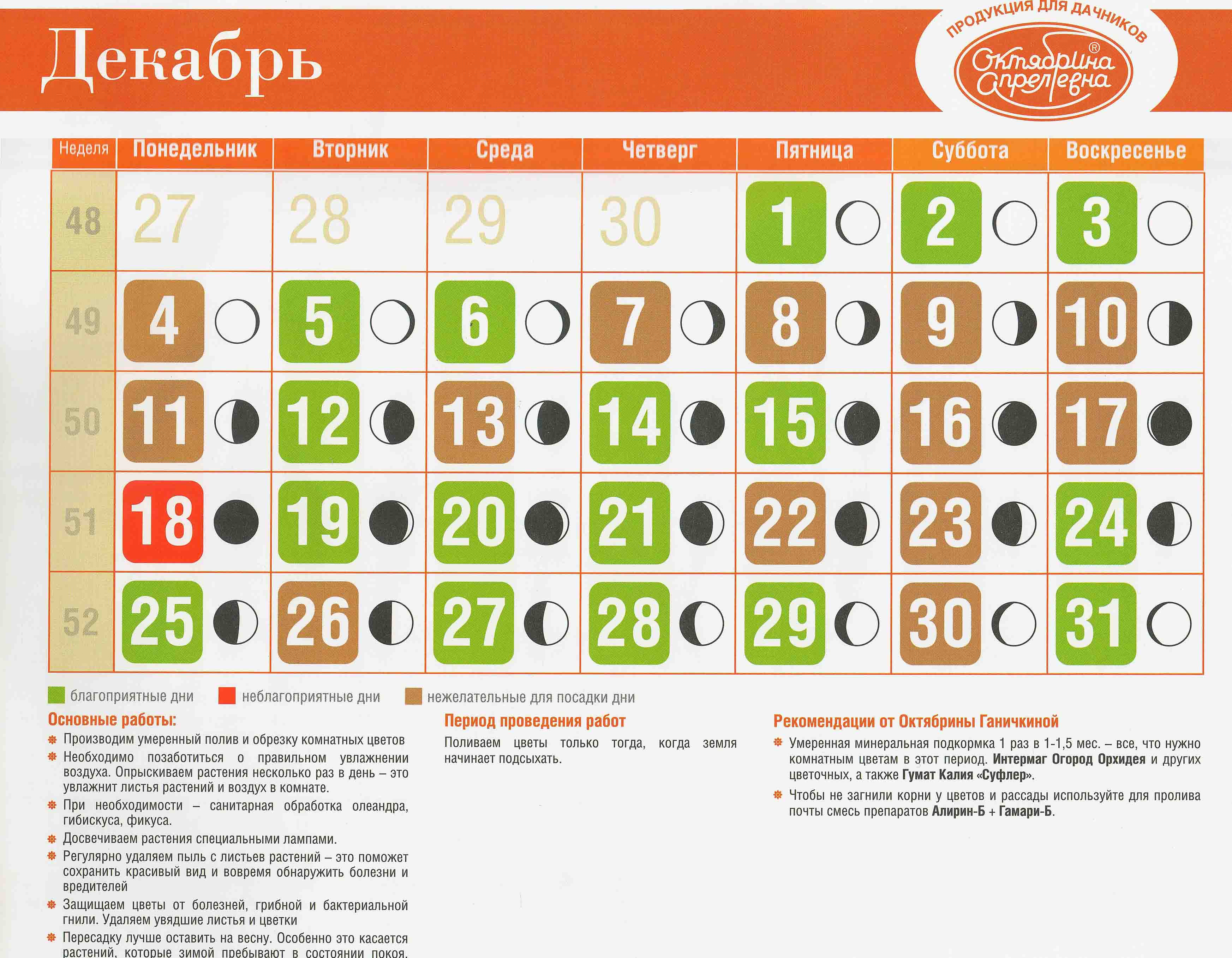 Удачный лунно-посевной календарь! ДЕКАБРЬ