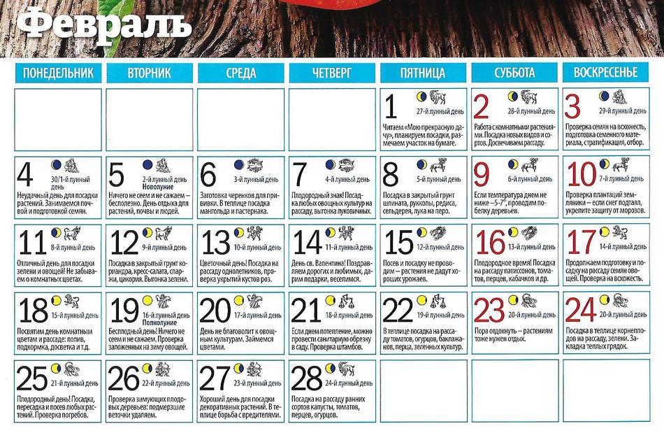 Удачный лунно-посевной календарь! ФЕВРАЛЬ 2019