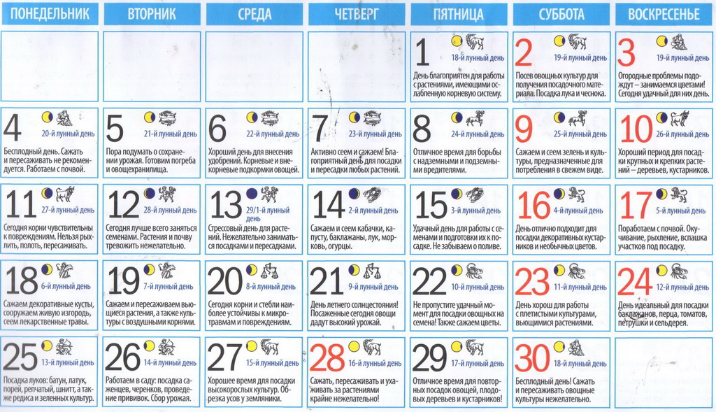 Удачный лунно-посевной календарь! ИЮНЬ