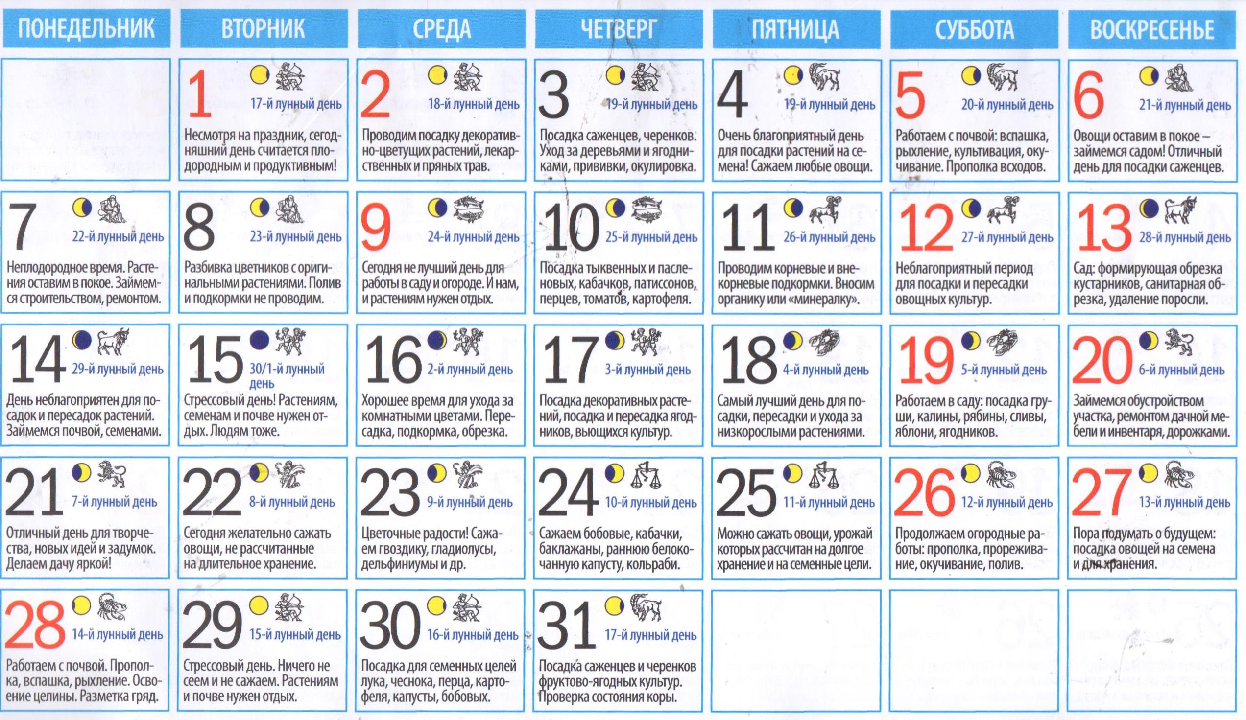 Посевной календарь на каждый день мая 2018 года