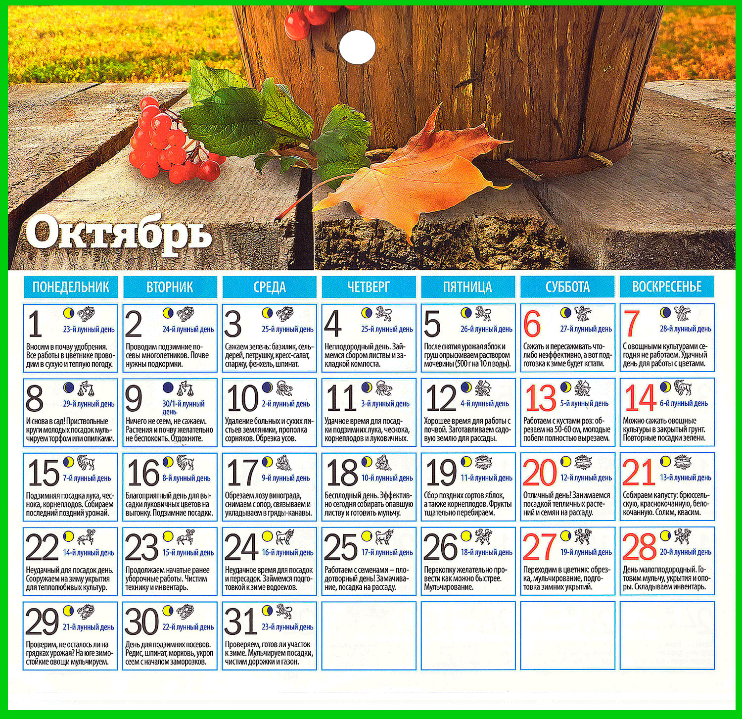 Удачный лунно-посевной календарь! ОКТЯБРЬ