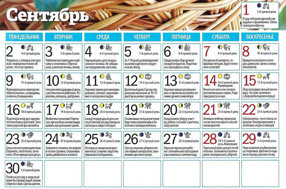 Удачный лунно-посевной календарь! СЕНТЯБРЬ 2019