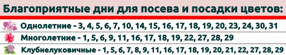 У цветоводов дни для посадки и пересадки многолетников, посева однолетних и многолетних цветов на рассаду, посадки декоративно-лиственных комнатных растений. Стоит помнить об умеренном поливе и подкормке.