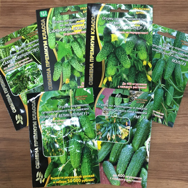 О супер пучковых огурцах уральской селекции хочется поговорить отдельно. Они способны давать просто космические урожаи - до 400 огурчиков с одного растения, но только при строгом соблюдении агротехники, основные моменты которой очень подробно указаны на самом пакете (Пучковое Великолепие, Санькина Любовь, Само Совершенство, Миллионер, МЭЛС). Запомните, чтобы получить такой гигантский урожай, нужен самый тщательный уход.